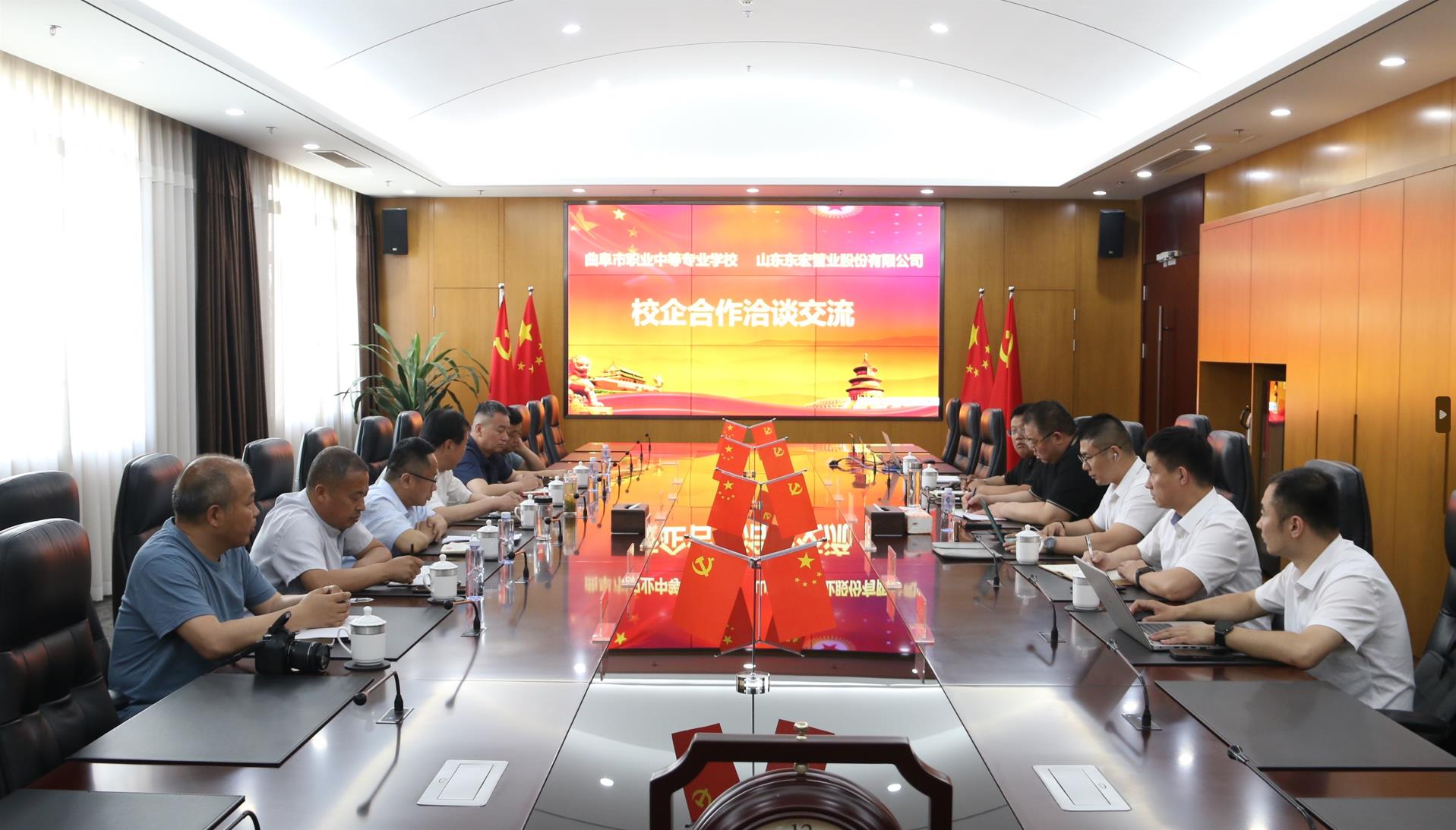 5月18日,曲阜市職業(yè)中專黨委書記王玉棟,黨委副書記、副校長(zhǎng)孔祥龍等一行6人,蒞臨東宏股份開展技能型人才培養(yǎng)模式探索交流。東宏集團(tuán)黨委書記、東宏股份總裁倪奉堯,東宏集團(tuán)黨委委員、監(jiān)事會(huì)主席馬伯群,東宏集團(tuán)監(jiān)事會(huì)主席周新硯,東宏股份人力資源部部長(zhǎng)魏建方、政策事務(wù)部部長(zhǎng)周續(xù)東、教培部副部長(zhǎng)鄭軍參加交流。